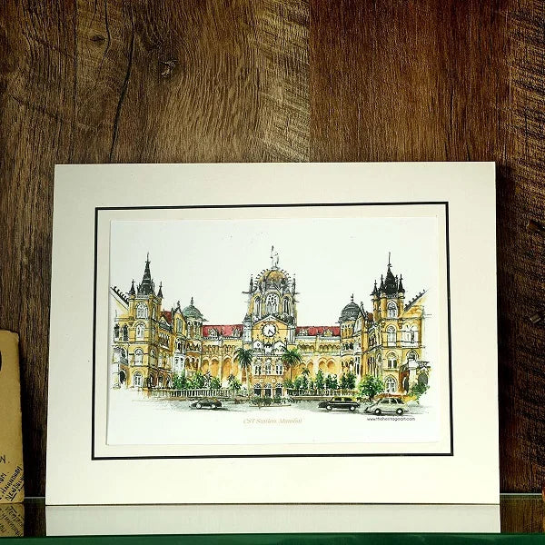 Our watercolour art print of CST Station urges everyone to visit this architectural marvel. Available in multiple sizes and framing options. You can get your art print in a customisable size. A perfect gift for every Indian!