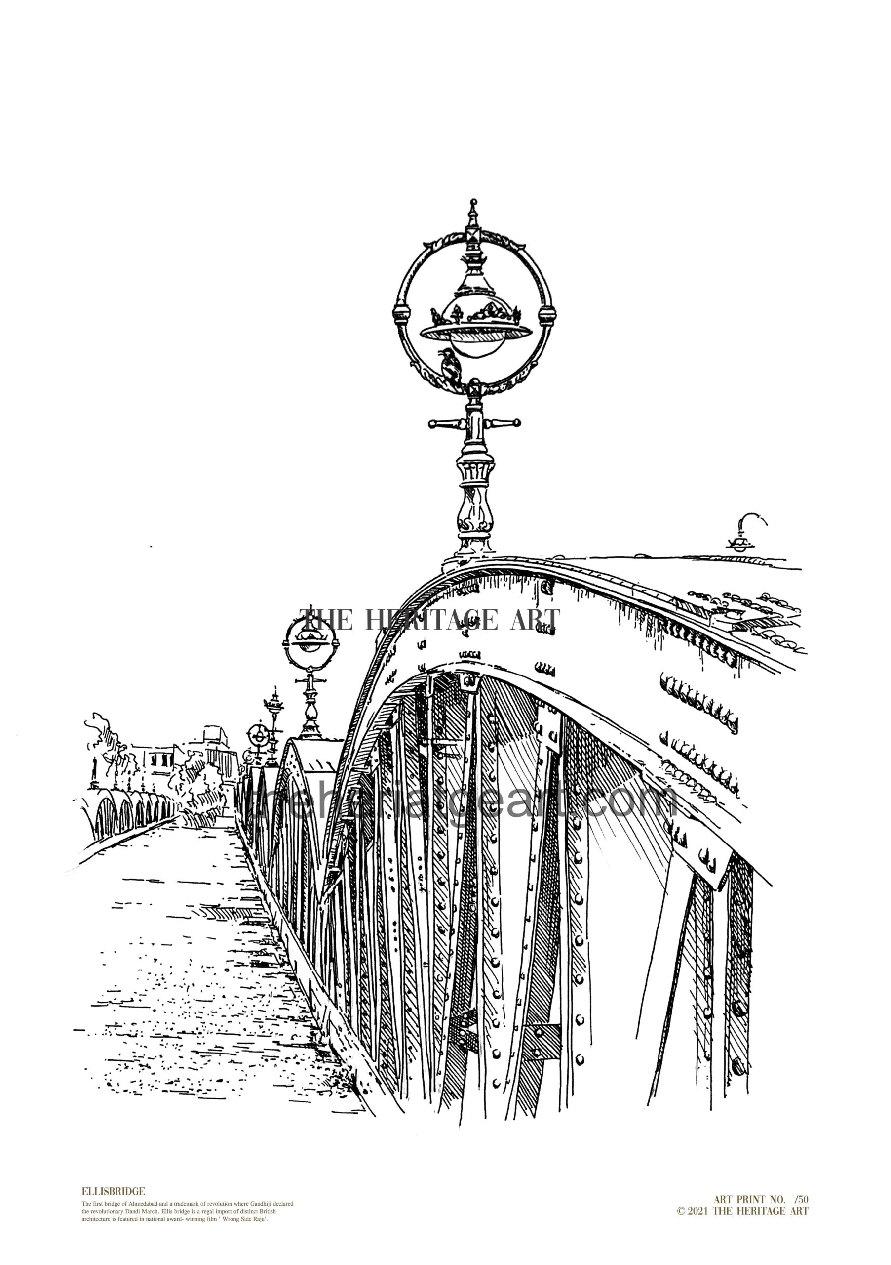 Grab a copy of the hand sketched illustration of Ellisbridge, a testimony of cultural and historical integration of the old walled city of Ahmedabad with the modern urban fabric. Available in multiple sizes and framing options, get your print customised today.