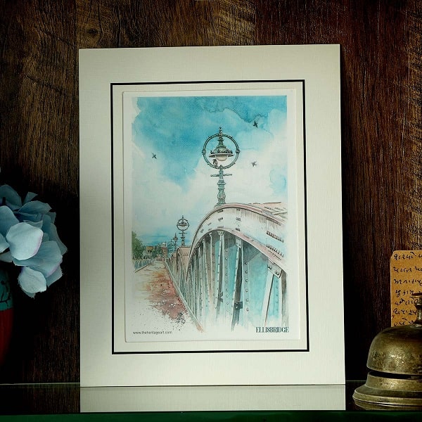 Grab a copy of the hand sketched illustration of Ellisbridge, a testimony of cultural and historical integration of the old walled city of Ahmedabad with the modern urban fabric. Available in multiple sizes and framing options, get your print customised today.