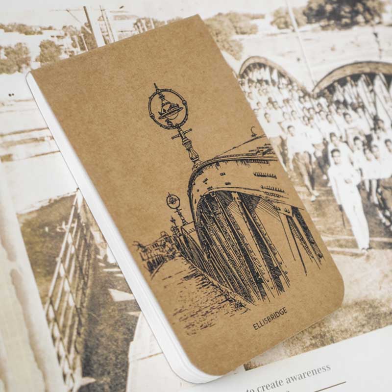 Our Ellisbrige Notepad is meticulously designed with a hand-made sketch of the Oldest Bridge of Ahmedabad printed on premium white and brown covers with rounded corners. Carry it on your city strolls and take note of vibrant city life.
