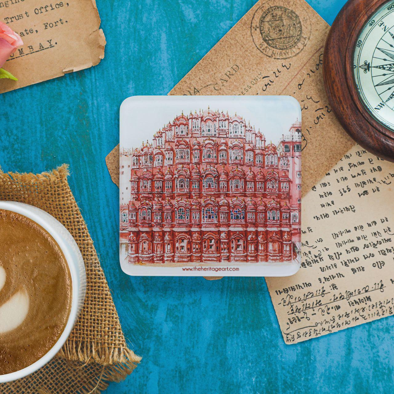 Hawa Mahal, or ‘The Palace of the Wind’, is an architectural delight designed especially for the royal court ladies. Take home the Hawa Mahal coasters for a daily dose of dopamine.