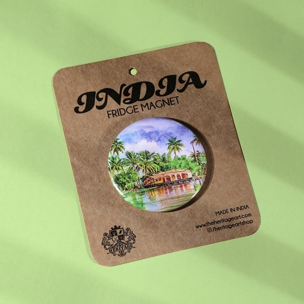 Get mad about Kerela with our newly launched fridge magnet collection. The Kerela House Boat Fridge Magnet has a beautiful watercolour print of the traditional kettuvalams.