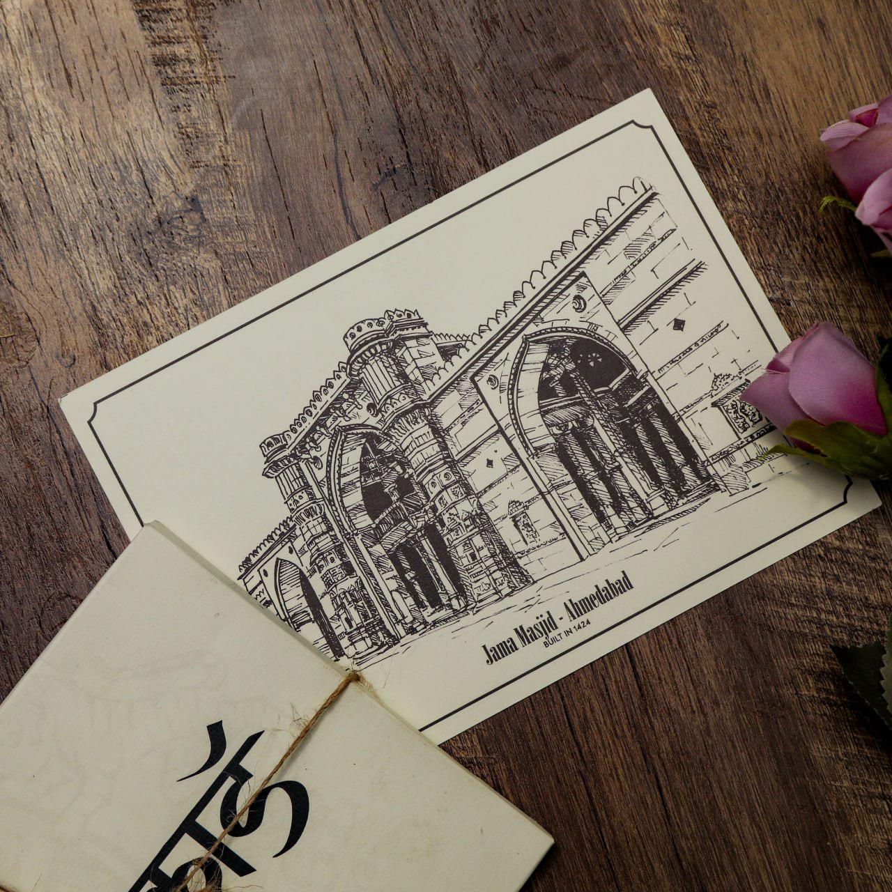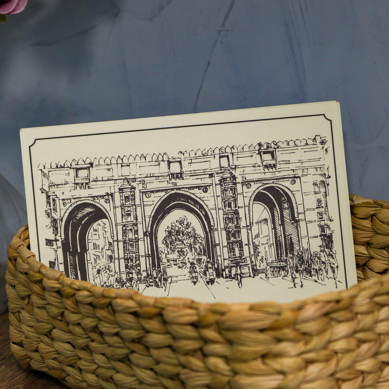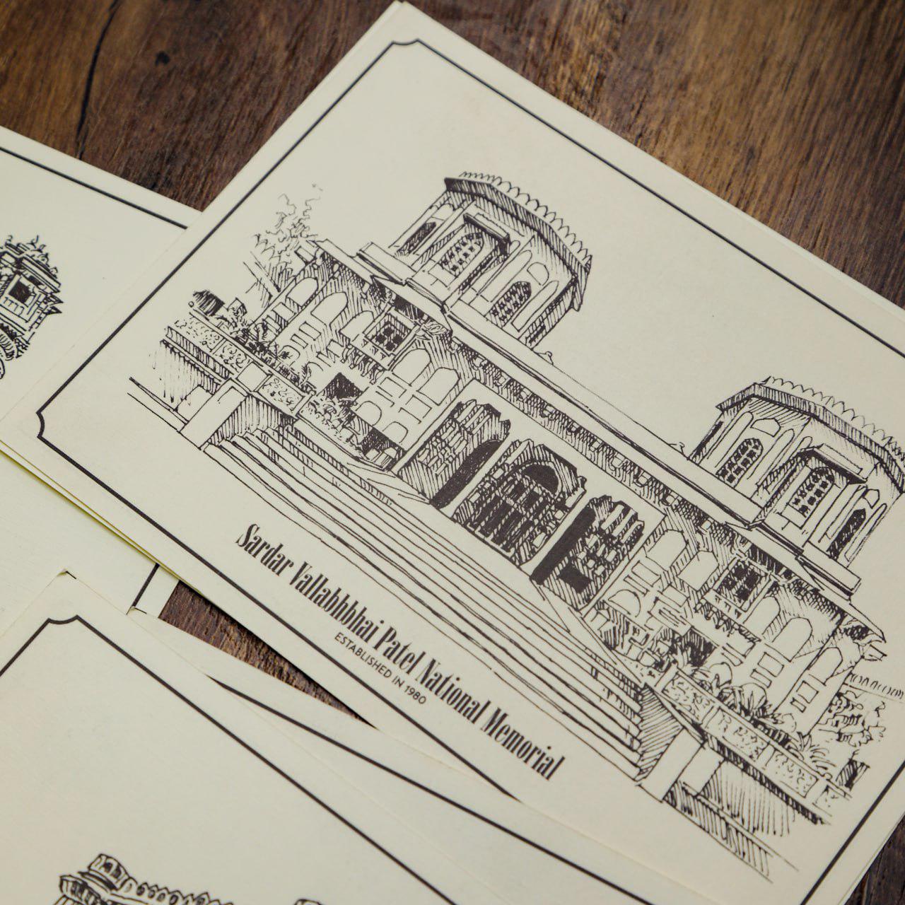A set of 6 postcards printed from original hand-made illustrations of heritage monuments of Ahmedabad. These artsy postcards are as timeless as our legacy & culture.