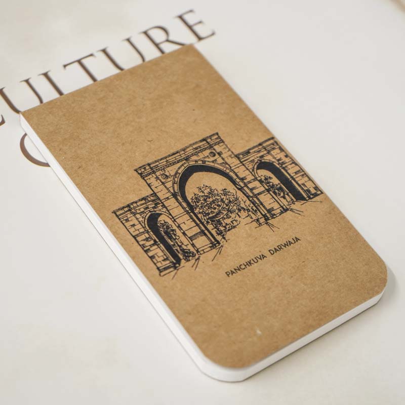 The Panchkuva Darwaza notepads are pocket friendly and easy to carry. A hand-made illustration of Pnchkuva Darwaza is printed on premium white and brown covers with rounded corners.