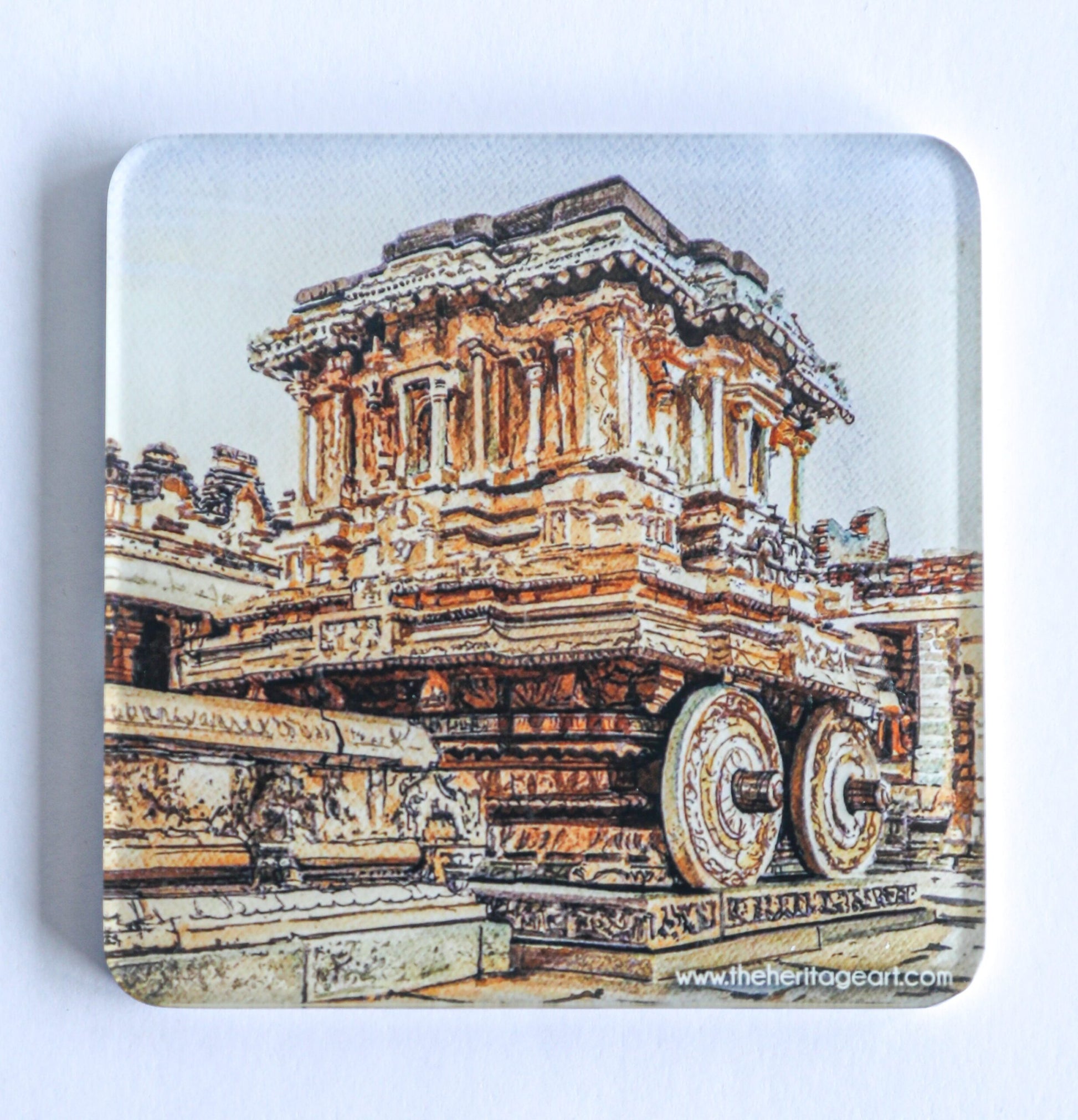 Stone Chariot is an iconic monument in front of Vijay Vittala Temple in Hampi, Karnataka. Dedicated to Garuda, the official vehicle of Lord Vishnu, the group of monuments at Hampi is a UNESCO World Heritage Site. The 16th-century Dravidian-style Stone Chariot has intricate carvings depicting mythical battle scenes. Standing on two giant wheels, two elephants are seen pulling the chariot.