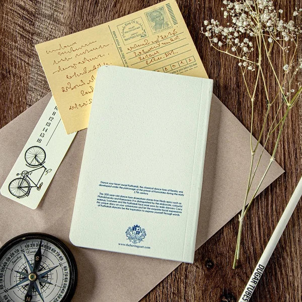Witness the grace of classical kathakali with our travel-friendly city diary. The front cover features a mesmerising watercolour illustration of the Kathakali dancer.