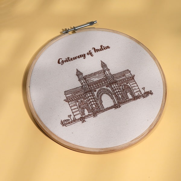 Adorn your walls with our handmade sewn embroidery of the ‘Gateway of India’. An iconic landmark of Mumbai, this triumphal arch is a timeless monument of India’s history.