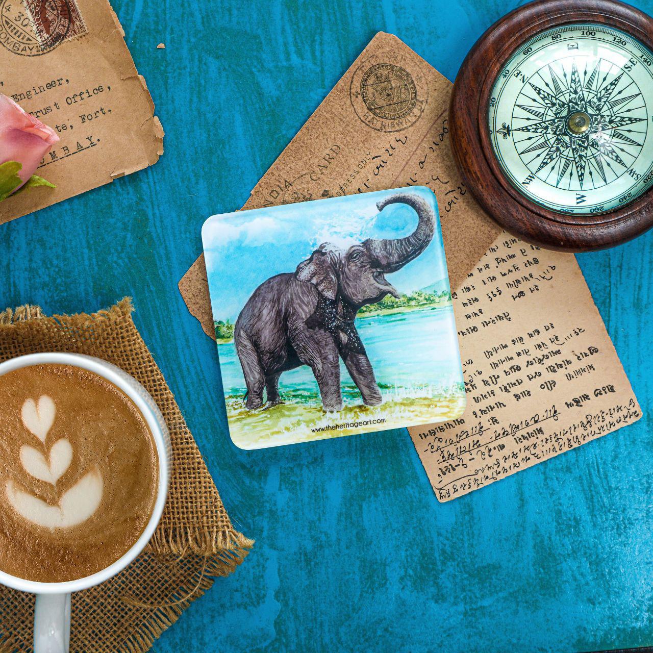 The Mirthful Wayanad Elephant Acrylic Coaster