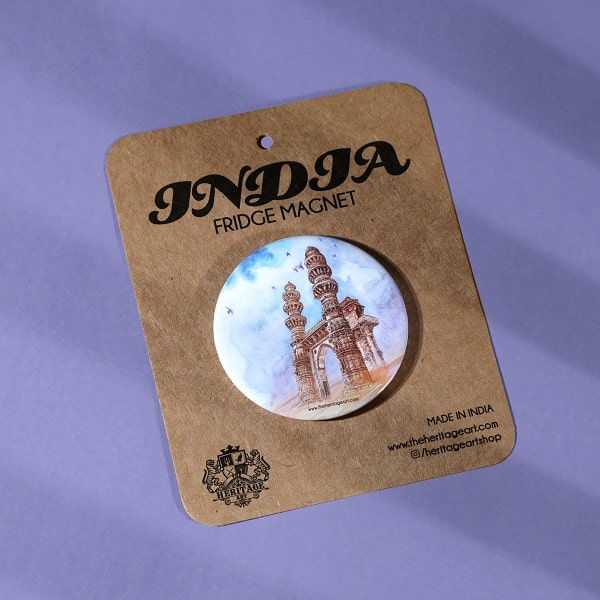 Grab our fridge magnets featuring the Jhulta Minara, the last surviving architectural element of the Sidi Bashir Mosque. Designed in a comfortable size of 2.25″ in diameter, they will gel perfectly with your magnet collection. Use it as a fridge magnet or a piece of art d?cor; the choice is up to you!