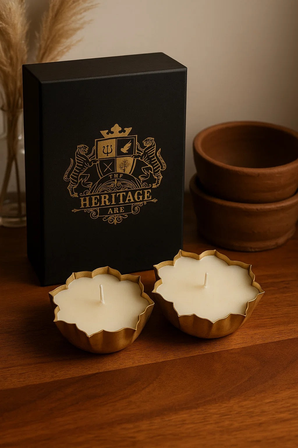 The Radiant Raga - Soywax Brass Urli Candle (set of 2)